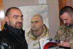 Цікаво, що, спілкуючись у кулуарах виставки, кілька людей в одностроях і дехто з присутніх журналістів не без гордості засвідчили секретареві НСЖУ свою приналежність до творчої спілки. Приміром, Іван Сута (на першій світлині) подарував видану на Галичині збірку власних статей, підписавши її «...з повагою і вірою в неминучу перемогу». Міцно потиснув руку озброєний професійною фотокамерою харків’янин Леонід Логвиненко (на третій світлині), автор книжки «Місячна соната війни» – переможець у спілчанському конкурсі в номінації «Журналіст року». Це представники, образно кажучи, «мистецької сотні», чільне місце в якій, поза сумнівом, належить таким талановитим особистостям, як автор портретів добровольців.