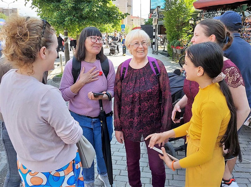 Перша «робоча прогулянка» столицею весняного Косова виявилася багатою на зустрічі. У неділю 22 травня (в день шанування пам’яті Тараса Шевченка) в середмісті просто на вулицях і майданах спілкувався з жителями Приштини автор цих рядків (принагідна вдячність – краянці-перекладачці Анастасії Лісовій, що допомагала долати мовний бар’єр). Втім, багато хто з косоварів знають і англійську. Нею українці спілкувалися наступного дня з кореспондентами Радіо Свобода, які записали інтерв’ю про дієвість програми Journalists-in-Residence Kosovo. Небайдужа до мистецтва Людмила Макей, таланти якої не обмежуються журналістикою, дарувала співрозмовникам власноруч виконані художні мініатюри в стилі петриківського розпису – цим на рівні народної дипломатії презентувала українську образотворчість.