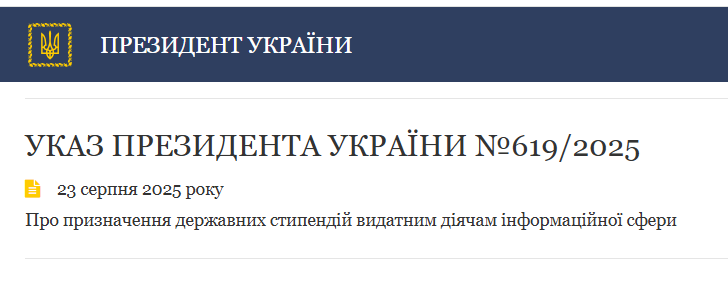 Державні стипендії 23 видатним діячам інформаційної сфери призначив Президент України Володимир Зеленський напередодні Дня незалежності України (указ №619/2025 від 23.08.2025 опубліковано на офіційному сайті глави держави). Серед достойників, які отримуватимуть довічні стипендії – заслужені журналісти Анатолій Жупина, Любов Коваленко, Людмила Мех, Вікторія Плахта, Микола Семена.