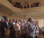 Оваціями зустріла публіка Олега Крису. Маестро був у вишитій червоними нитками чорній сорочці. Підтягнутий, стриманий, зосереджений.