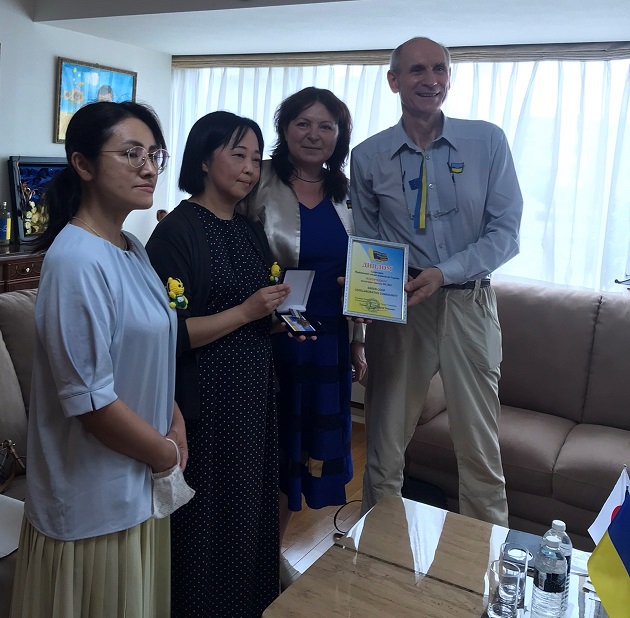 У Посольстві України в Японії представникам GREEN COOP, а їх було п’ятеро на зустрічі на чолі з пані Хідака, вручили почесну відзнаку й диплом за підписом голови НСЖУ Сергія Томіленка. Ця організація в Україні, як відомо, найбільша серед творчих спілок – у ній майже 20 тисяч членів. Медійники щиро подякували підприємцям за допомогу й повторили актуальне спілчанське гасло – «Журналісти – важливі». Справді, роль преси першорядна в інформуванні суспільства про події, пов’язані з війною. З тією війною, яку розпалив злочинний кремлівський режим і за яку він неодмінно має бути покараний.
