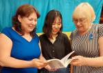 Тетяна Калиновська, головна редакторка обласної газети «Черкаський край» і очільниця обласної організації НСЖУ поцікавилася в японки, яка так доречно вживає українські слова: «Вивчаєте українську мову?» У відповідь Аска витягла зі своєї мініатюрної сумочки книжку – самовчитель розмовної української мови. «Я вже місяць її вивчаю, – похвалилася колега. – Мрію колись побачити Київ і на вашій батьківщині скуштувати страви української кухні». Звісно, що в колеги з Сайтами вмить з'явилися четверо друзів у Києві й Черкасах. Принагідно згадалося, що український борщ віднедавна внесено до списку нематеріальної спадщини ЮНЕСКО. «Ми нагодуємо вас і борщиком з пампушками, і вареничками, і налисничками з сиром, – пообіцяла зворушена пані Тетяна. – Будь ласка, приїздіть. Ласкаво просимо!»