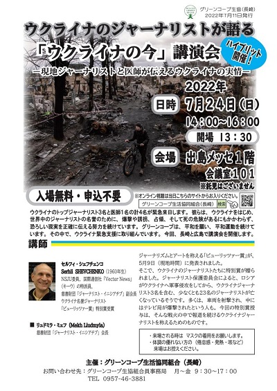 Дбає японський партнер і про здоров'я журналістів та членів їхніх сімей (цієї осені він організував закупівлю вітамінів, які безплатно одержали в Києві й на Житомирщині працівники преси). Ця частина допомоги українцям надійшла через співпрацю японських доброчинців з громадською організацією «Асоціація освітян за безпечне майбутнє», а також з ВБФ «Журналістська ініціатива».